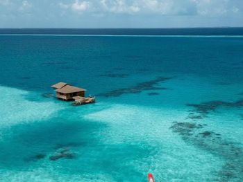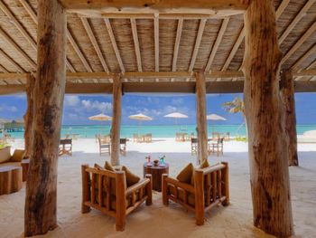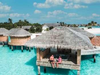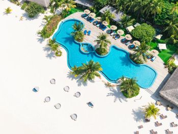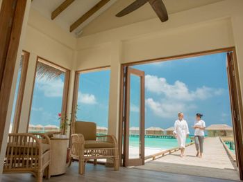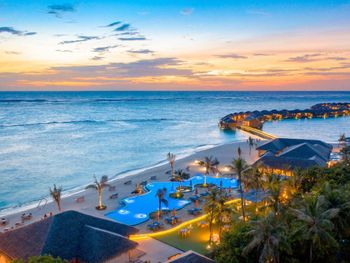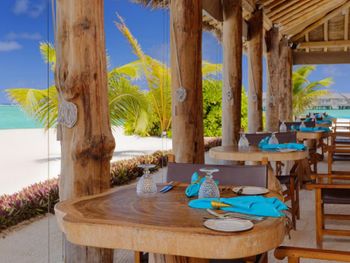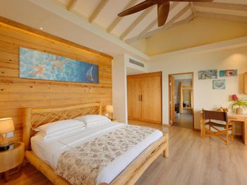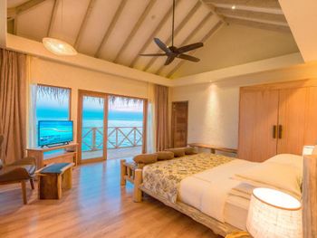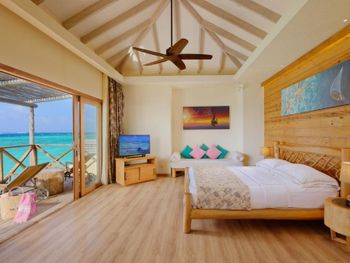 Попали на 4 дня в сумасшедшие дожди и ветер , в вилле на воде невозможно было спать, ветер в щели дверей задувал со звуками из преисподней которые к нашему отдыху не имели никакого отношения. 4 дня из 9 мы просто не спали, просьбу переселить или повысить категорию номера руководство игнорировало. На пляже песок в перемешку с ракушками которые впиваются в ноги, после массажа обещанное джакузи так и не заработало на третий день, забыли зубные щетки и пасту, в отеле 5 звёзд их тоже не оказалось , пришлось пойти в магазин и купить . Магазин совершенно бессмысленный, маленький и бесполезный . Нет рифа, снорклить негде, рыбок нет . Дайвинг пустой, дно бедное. В общем не советую этот отель, можно найти лучше и ближе , жаль что руководство этого не понимает .