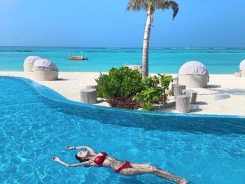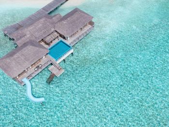 Прекрасный отель, относительно новый, все свежее, вкусно кормят. Нет шведского стола, все рестораны a la carte. Мои фавориты итальянский и паназиатский (бронировать надо заранее). Ресторан H2O — прекрасные виды, но от кухни не в восторге, ниже ожиданий. Были днём, видели рифовых акул. Брали виллу дельфин с бассейном. Это лучший выбор. Виллы манта расположены на ветреной стороне, обращены к пляжу, не так приватно + сдвоенные, с соседями через стенку. Также неплохие виллы Aqua Suite без бассейна. Такие же но с бассейном с близким видом на волнорезы (на вид буквально 5-6 метров) + рядом стоянка для гидроплана.