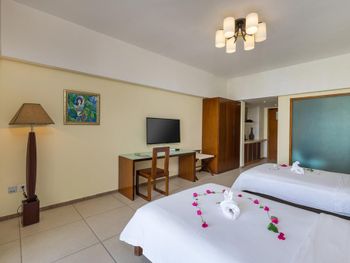Скудные завтраки, иногда в номере был запах сырости . Полы часто были в песке , хоть и мыли каждый день . Нет русских каналов по тв.