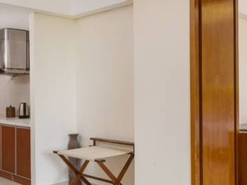 Номера очень старые и неуютные, моря видно совсем чуть-чуть. Довольно далеко от моря.