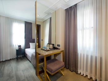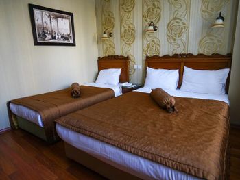 Выбирали отель по отзывам, цена качество! И не пожалели, номер очень чистый и уютный! В номере было все, что нужно, можно было не везти свои душевые принадлежности и тапочки! Каждые два дня смена белья, но самое важное для нас с мужем - это удобный матрас и подушки! У кого проблемы со спиной, нас поймет! Мы замечательно высыпались! В отеле тихо! Завтраки сытные и очень вкусные! А расположение просто замечательное, пять минут от площади Султанахмет и тд. Комфортный, небольшой, уютный отельчик, даже атмосферный! Старинный особняк с отлично отделанными номерами! Спасибо отелю!