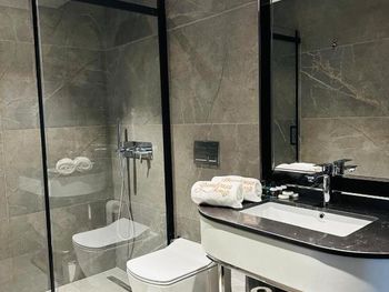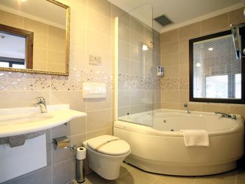 Я запрашивала номер с ванной в номере. Указала это в дополнительных требованиях и получила от отеля подтверждение. Когда нас поселили в номер, там был традиционный турецкий хаммам.... прикладываю фото. Это каменная скамейка, на ней ваза без слива. В вазу подразумевается наливать воду, и поливать себя из медной миски, которая стоит рядом... слив - в полу. Номер поменяли на следующий день после моей настоятельной жалобы. Ванну не дали, но хотя бы душевая традиционная кабинка там была. Будьте осторожнее с этим моментом, если падет выбор на этот отель. Трансфер также не удался из аэропорта (заказывала от отеля водителя, но водитель не обозначил себя никакой табличкой в зоне прилёта, потому уехали на такси.)