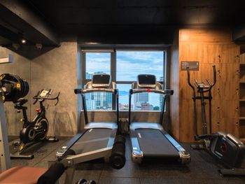 сауна и тренажерный на 20 этаже отеля и Луанж бар с бассейном на крыше.