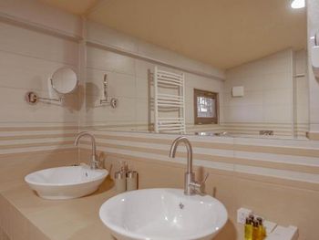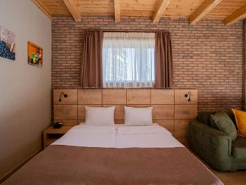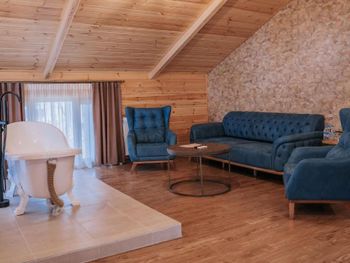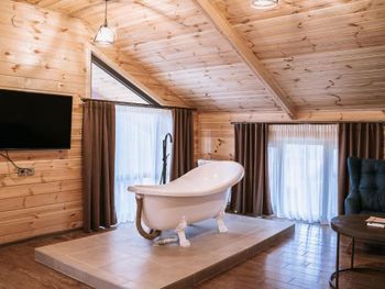 НО бронировали улучшенное шале, чтобы жить отдельно в домике, было больше места, и было где разгуляться котам. Приехали, а нам сказали в шале проблемы с отоплением, и в феврале там не возможно жить, очень холодно. Что было в полне предсказуемо, в каждом отзыве пишут о той же проблеме. Хотя перед приездом мы писали в чате букинга согласовывали детали, никто так и не удосужился предупредить заранее. В итоге нам предложили заселиться в люкс, под предлогом бонуса от отеля, хотя на сайте и букинге цена за люкс никак не отличается от улучшенного шале. Впечатление сходу испортилось. Наш номер находился на 4 этаже, а на 5 этаже у них ресторан. Начиная с пятницы, проводить вечера стало невозможно!!! 3 вечера подряд, с ресторана гремела живая музыка, так, что в номере было не возможно общаться, смотреть фильмы и в целом находиться! А ведь это люкс, люди доплачивают за тихий и спокойный отдых в СПА-отеле. А получают крики местных шансонье, которые судя по всему собирают всех местных жителей на выходную попойку. Неужели за столько лет и жалоб невозможно продумать шумоизоляцию!