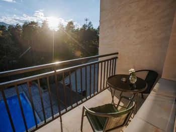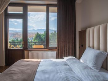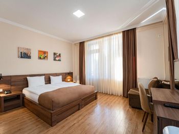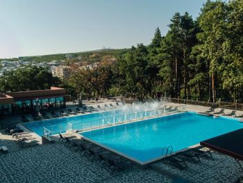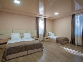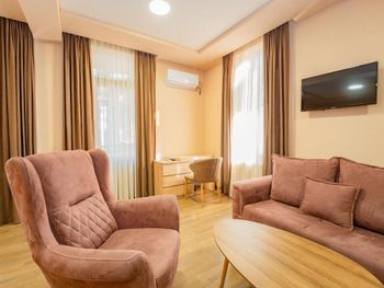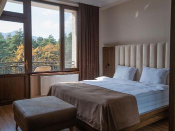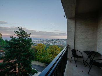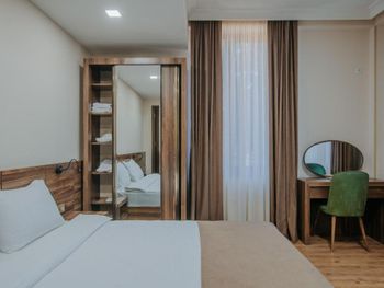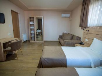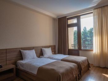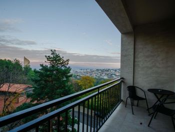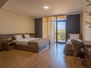 Приехали на 2 ночи в этот отель, что отдохнуть от Тбилиси в тишине с красивым видом. Отель находится на возвышенности над городом из-за чего вокруг действительно полная тишина. Был не сезон, но людей в отеле было много, тем не менее никто никому особо не мешал. Очень порадовало, что есть чем заняться: бани и бассейн (крытый и открытый), бильярд в отдельном домике, настольный теннис, фитнес зал, велосипеды. На завтраке кормят обычно, но все что нужно по стандартам шведского стола есть. Если хочешь выехать в город, то отель вызывает такси и оно приезжает через 5 минут. Мы были без машины, но смогли на том же такси доехать и в Цинандали погулять и по Телави и спокойно вернуться в отель. Номер простой, но все необходимое есть, даже душевые принадлежности, тапочки и халаты. Мы хорошо отдохнули!