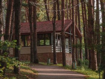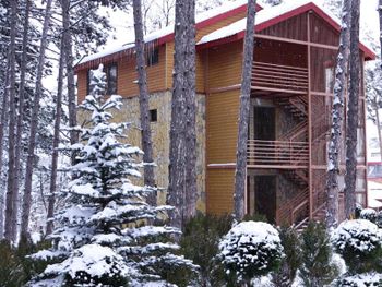 Уютный сосновый бор на территории, по нему приятно пройтись.