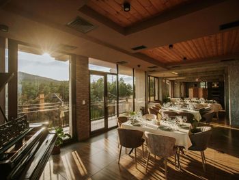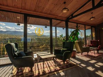 Местоположение прекрасно, невероятно чистый и приятный воздух, очень красивая территория. Мебель в шале новая, эстетичная. Виды из шале 2, второй этаж замечательные. Гамаки, качели, фонарики прекрасно дополняют композицию. Завтраки неплохие, но достаточно скудные. Персонал вполне вежлив, адекватно реагировали на просьбы. Понравился бильярд на территории. Виды в ресторане также прекрасны. Еда в ресторане вкусная, но свиные ребрышки больше похожи на шашлык и требуют доработки. Радует, что есть парковка на достаточно больше количество мест. Сауна хорошая, температура внутри держится отлично.