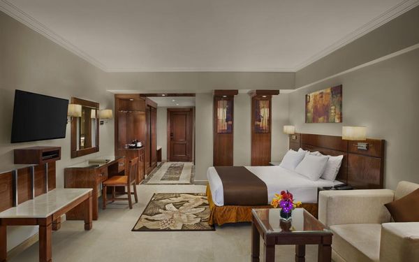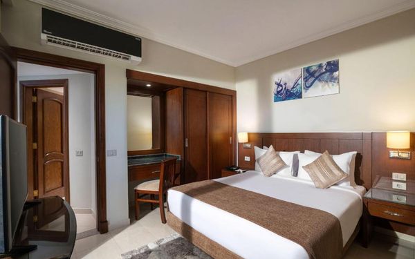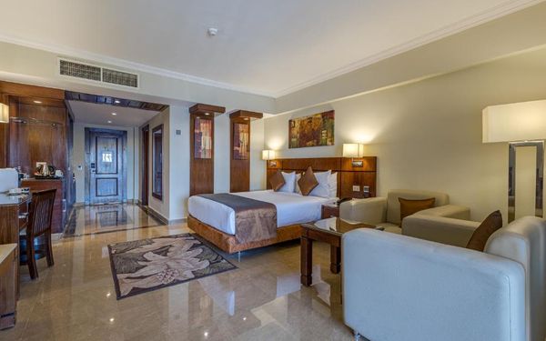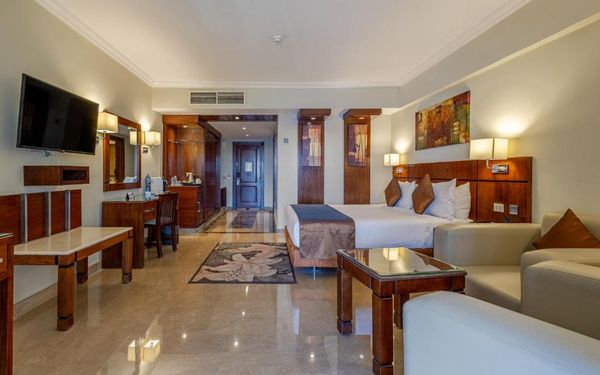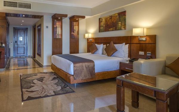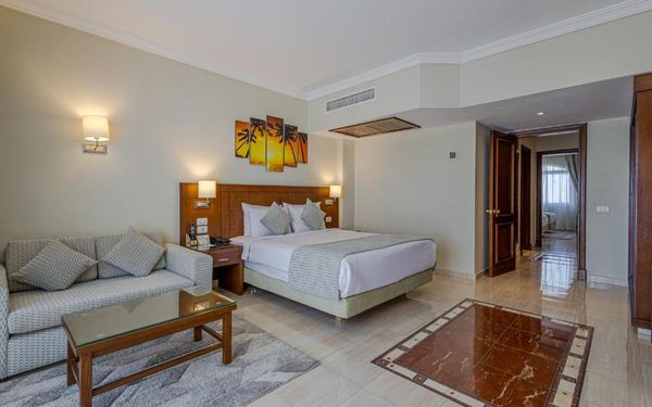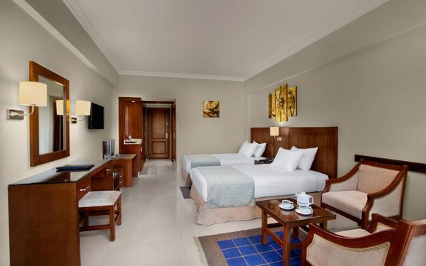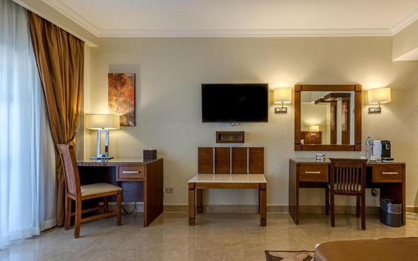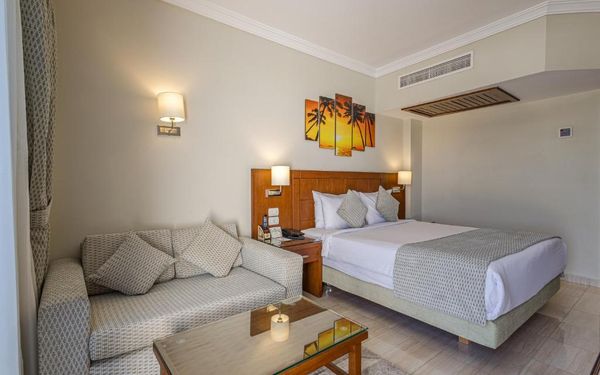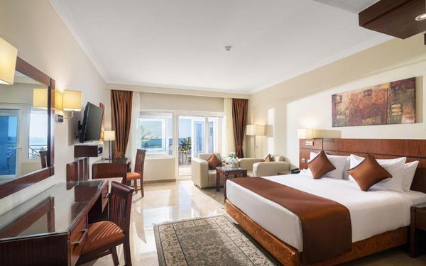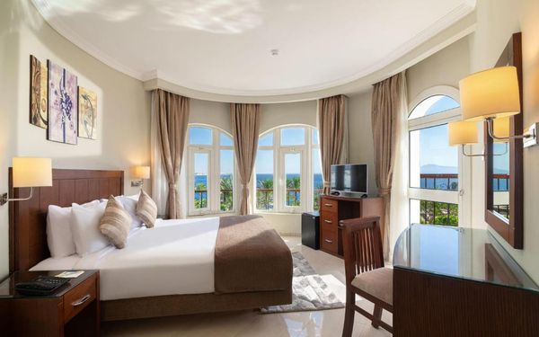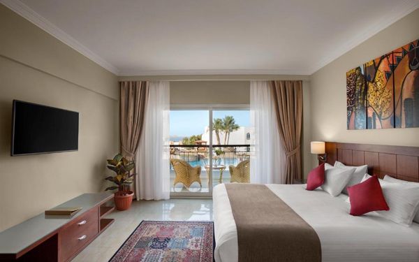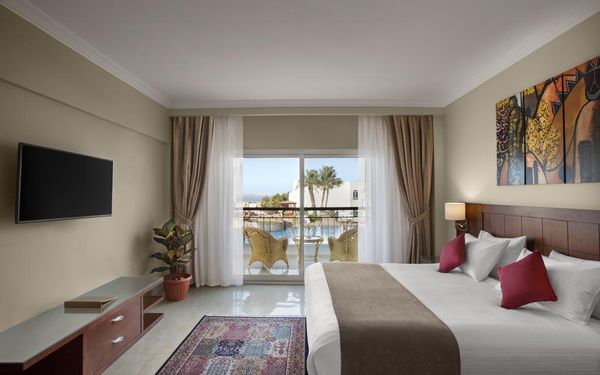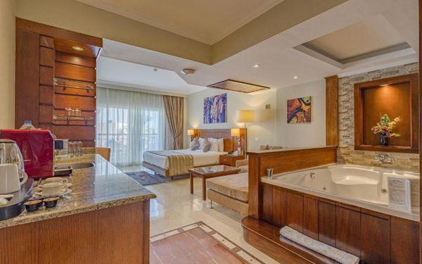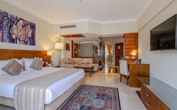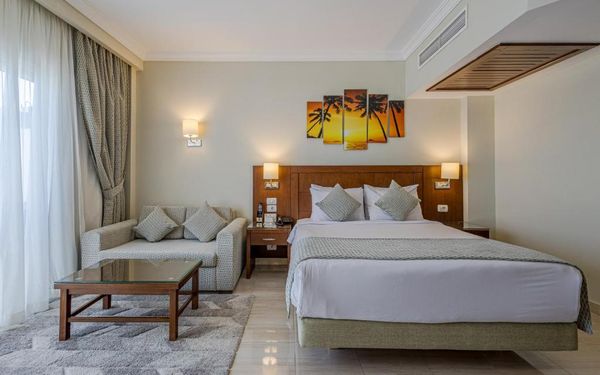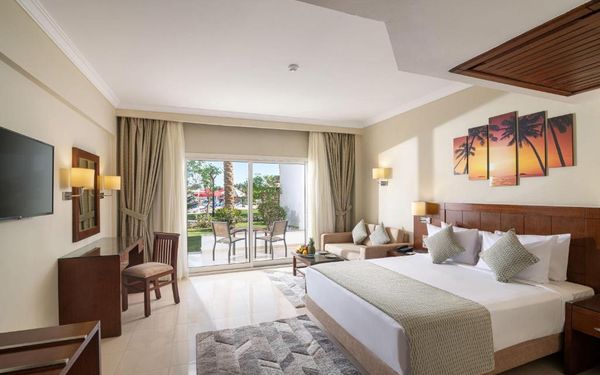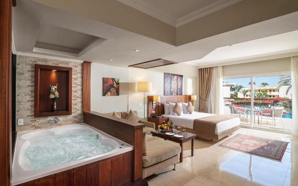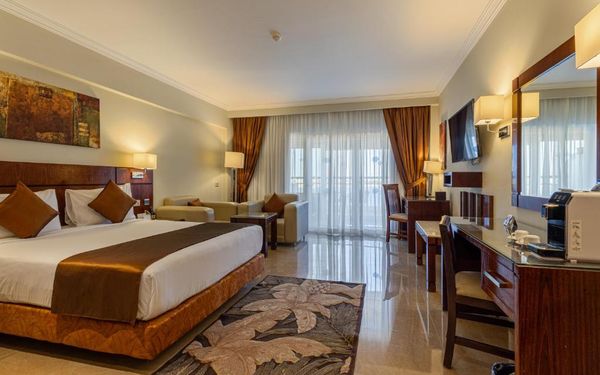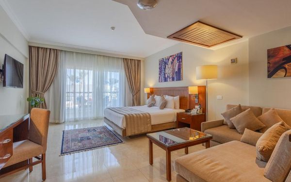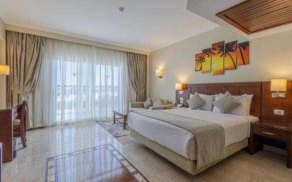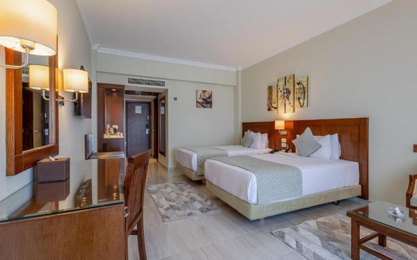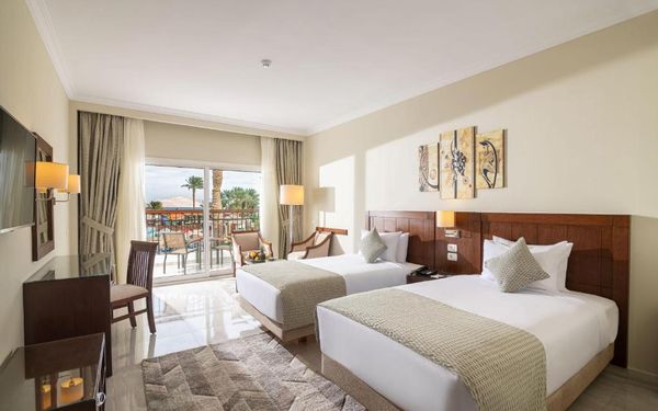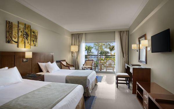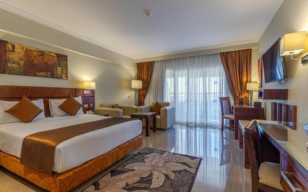 Первый раз отдыхали в Египте, отдых прошел отлично, в номер заселили быстро. Ребята на ресепшн разговаривают на русском языке, номер был недалеко от моря. По прилёту пошли с мужем сразу к морюшку, и тут я офигела от чистоты и прозрачности воды)) Территория отеля очень ухожена, много насаждений, цветов, пальм, есть где красиво сфотографироваться)) Кормят хорошо, еда на любой вкус, большое разнообразие морепродуктов, мяса, курицы, салатов, сладостей. Официанты быстро приносили напитки. Несколько бассейнов на территории, есть отдельно детские, мест всегда было свободных много. Персонал не сидит в сотках, работу выполняют ответственно. Вечером у главного ресторана поют местные артисты, один раз была дискотека, на берегу моря ежедневно аниматоры проводят игры, танцы, йогу. В барах разнообразие напитков как без-, так и алкогольных. Наш номер был 302, уборка номера проводилась хорошо, забыла имя клинера, хороший парень, реагировал быстро)) Ходили в индийский и итальянский рестораны, еда тоже была достойная, единственное, в индийском островато, на любителя. Территория отеля большая, в основном, я так поняла, туристы из соседних государств. Везде слышится русская речь. Соседей слышно не было, складывалось впечатление, что мы одни в корпусе. Пьяных ни разу не видела. Вай фай работал отлично, нареканий нет. А ещё, здесь такие рассветы, просто восторг. Солнышко прям над морем встаёт из-за гор, как на картинке!!! Начинаю уже скучать по прекрасному отдыху!!