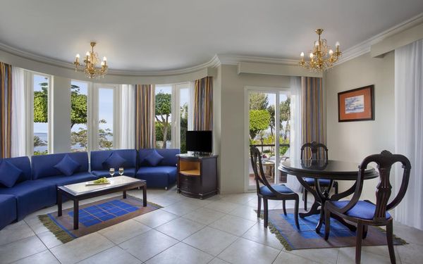 Советую делать upgrade по приезду в отель. У нас был номер с видом на море, но мы повысили его до сьюта за вполне адекватную стоимость. Жили вдвоем в номере 642 с джакузи. У меня была своя комната, а у сына отдельная небольшая. Вид с балкона потрясающий. В этом номере удобный балкон и скдик, никто мимо него не гуляет, советую именно его. Мимо других сьютов все проходят мимо и нет приватности. Также советую именно деревянный пирс и лежаки возле него. Там и станция полотенец, и бар отличный и остановка таф тафа, который отвозит до ресторана, который рядом с reception. Также советую обедать иногда не в самом ресторане, а во французском ресторане, который рядом с основным пляжем и пирсом-пантомом. Там выбор еды чуть меньше, чем в основном ресторане, но отличный вид и можно не наряжаться.