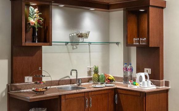 Guests can schedule massage treatments at Sultan’s spa, or relax on a wooden lounger on the poolside. Children can have fun on the waterslide or on the playground, or enjoy the activities of the kids’ club.