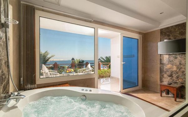 This 5-star resort features a private sandy beach with overwater decks on the Sharks Bay.It features 5 palm-framed freshwater pools, some of them offering full views of the Tiran Island. One of the pools is for adults only and offers an open air Jacuzzi and a swim-up bar.