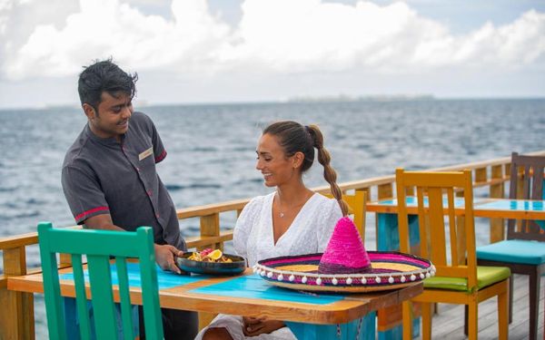 Гостям предлагается завтрак «шведский стол», континентальный завтрак или полный английский/ирландский завтрак. При Furaveri Maldives - COMPLIMENTARY ROUND-TRIP SEAPLANE TRANSFER FOR TWO FOR A MINIMUM OF 5 NIGHTS OR MORE FOR STAYS 1ST MAY 2026 TO OCTOBER 31ST 2026 работает ресторан, где подают блюда китайской кухни, блюда индийской кухни и блюда итальянской кухни. Гости могут попросить приготовить вегетарианские блюда.