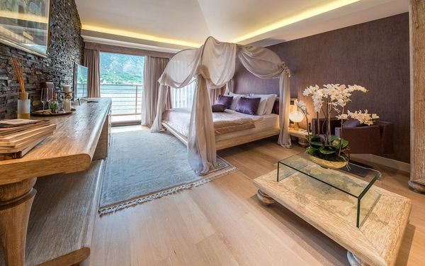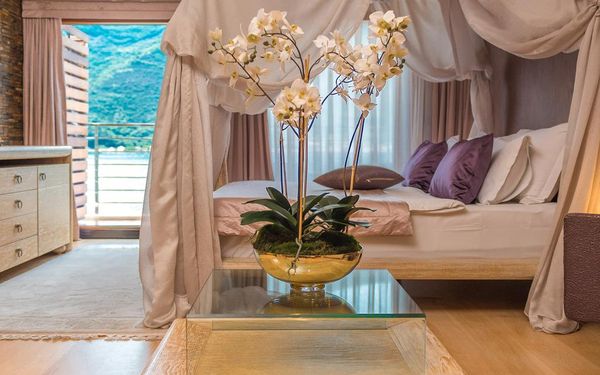 Роскошно декорированный 5-звездочный бутик-отель Forza Mare находится в Доброте, на частном пляже на берегу залива Котор, в 3 км от центра города.