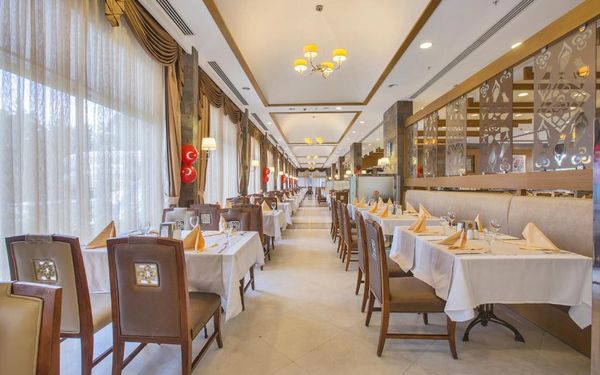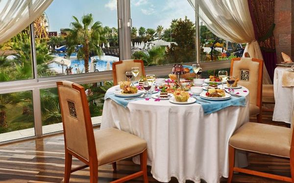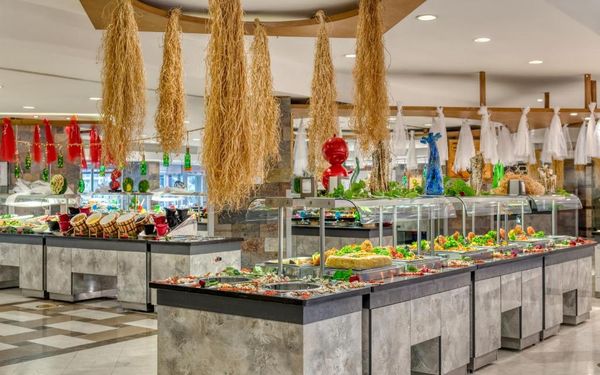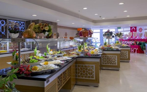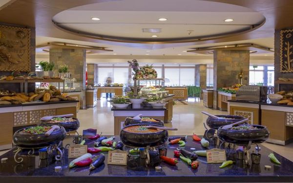 Завтрак, обед и ужин сервируются в виде "шведского стола" в главном ресторане. В других ресторанах вы сможете заказать по меню блюда китайской или итальянской кухни, а также турецкий кебаб. Напитки и закуски предлагаются в 5 барах и кафе на территории отеля.