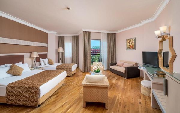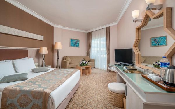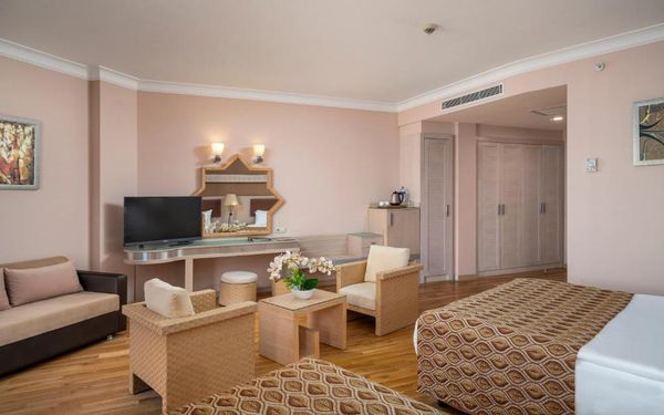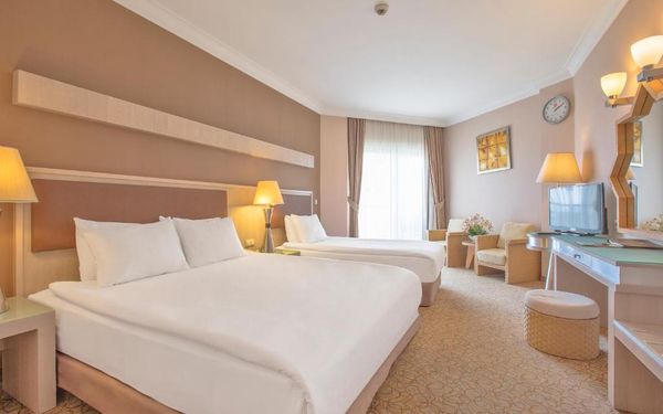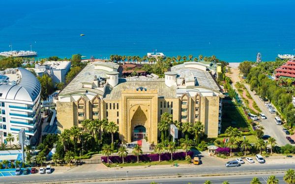 Курортный спа-отель Mukarnas находится непосредственно на берегу моря в Средиземноморском регионе. Здесь к вашим услугам отдельный песчаный пляж, открытые бассейны, водные горки и спа-салон. В архитектуре отеля прослеживается влияние сельджуков.