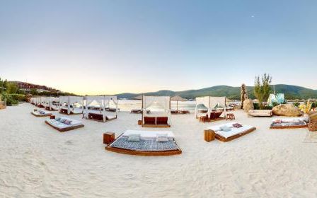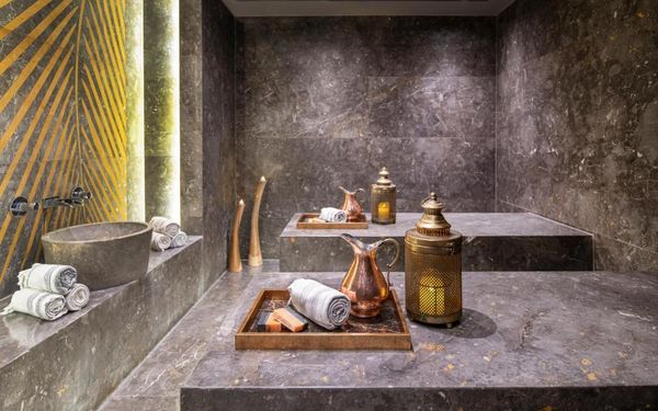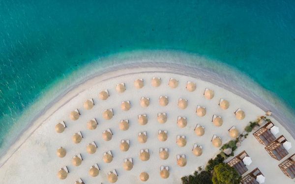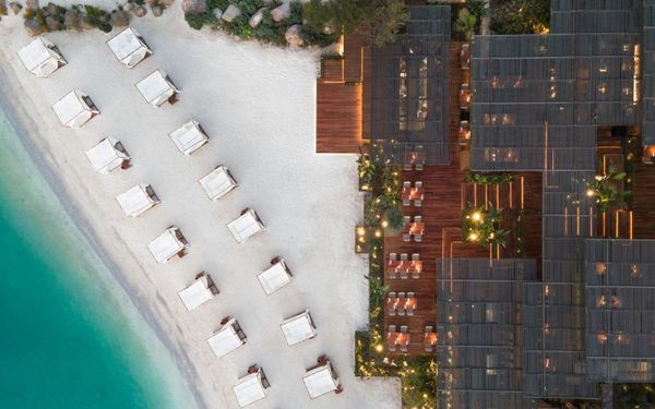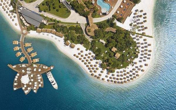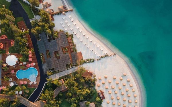 The hotel features three private beaches, uniquely designed heated outdoor swimming pools, and an exclusive spa & wellness center, providing guests with a serene and indulgent escape. Complimentary Wi-Fi and private on-site parking are available throughout the property.