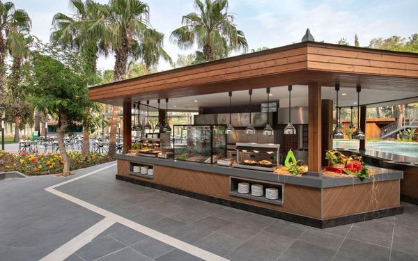 В тариф «все включено» входит завтрак, обед и ужин в главном ресторане. В ресторане с обслуживанием по меню подают вкусные блюда интернациональной кухни. В баре можно заказать местные алкогольные и безалкогольные напитки.