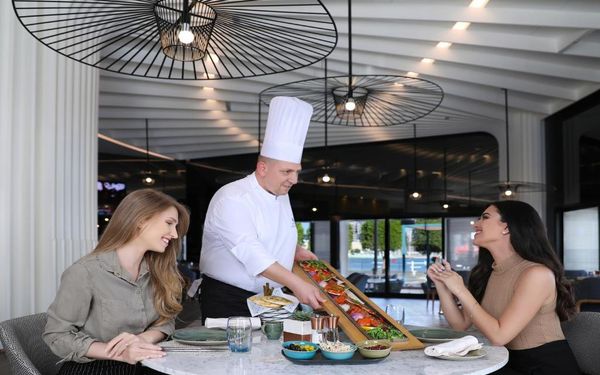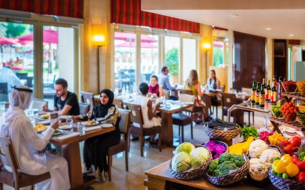 Гости смогут отправиться в настоящее кулинарное путешествие в ресторанах отеля. В ресторане Kamoon с расслабляющим видом на бассейн подают блюда традиционной арабской кухни. В современном и элегантном ресторане Horizon, который работает весь день, готовят блюда интернациональной кухни. Ресторан The Lounge, из окон которого открывается прекрасный вид на бассейн, расположен в лобби и специализируется на легких закусках, лакомых десертах, разных видах кофе и полезных напитках.