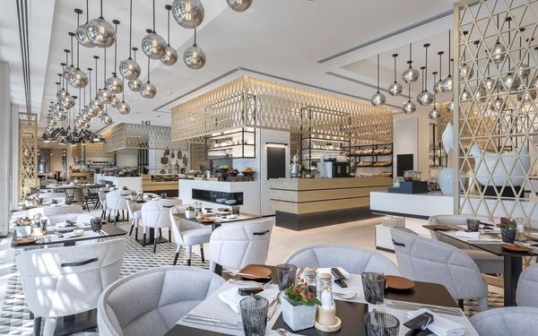 Потрясающий ультрасовременный отель Al Bandar Rotana удобно расположен на побережье в центре города. Элегантный 5-звездочный отель идеально подходит для бизнес-туристов и путешественников. Отель находится на краю морского рукава Дубай-Крик, рядом с несколькими достопримечательностями, в том числе гольф- и яхт-клубом Dubai Creek, Дубайским дельфинарием в парке Крик и развлекательным центром Rise Dubai Creek Harbour development, где играет живая музыка, выступают диджеи, проводятся кинопоказы и необычные обеды в непринужденной обстановке.