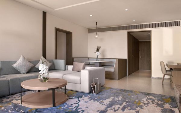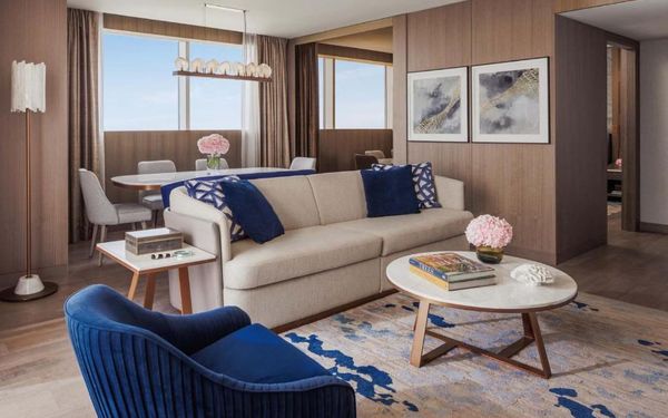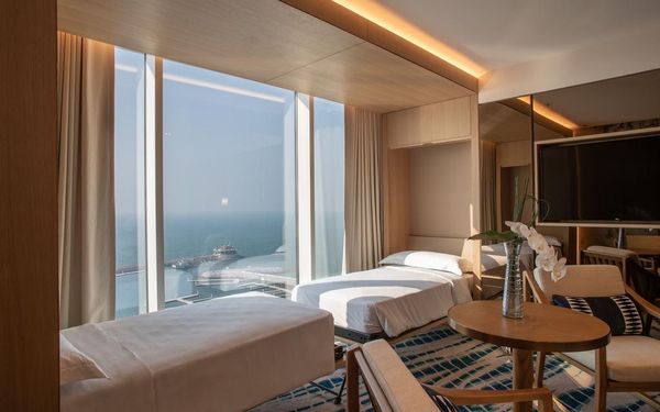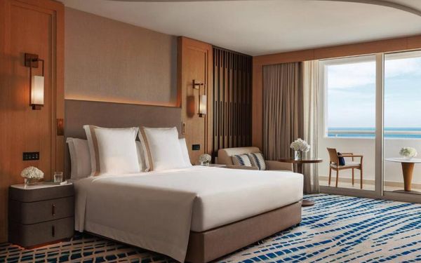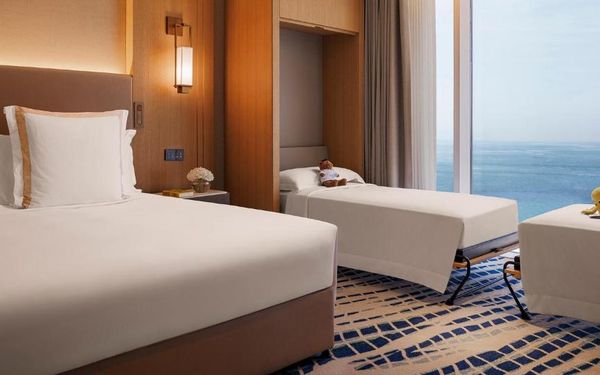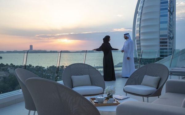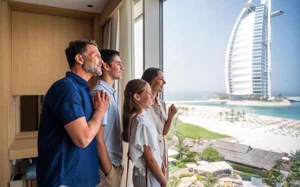 К услугам гостей отеля просторные номера, люксы и виллы с французскими окнами, откуда открывается вид на Персидский залив и небоскреб «Бурдж-эль-Араб Джумейра».