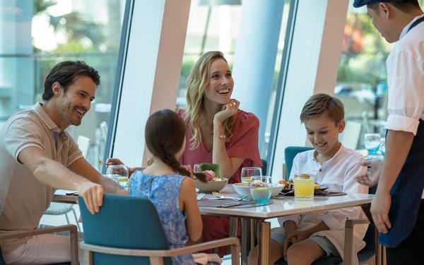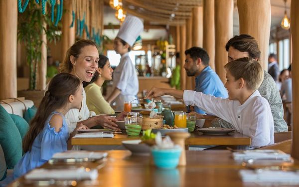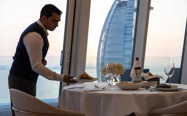 В ресторанах отеля Jumeirah Beach, включая превосходные рестораны французской и британской кухни, предлагается широкий выбор блюд интернациональной кухни. На 25 этаже с видом на пляж и городской пейзаж можно заказать прохладительные напитки. Здесь регулярно проводится акция «счастливый час».