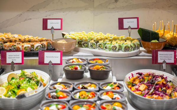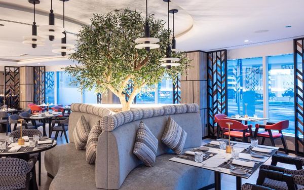 В отеле Rose Rayhaan by Rotana работают 3 ресторана и бара, в том числе ресторан O'lio & Violet. В этом ресторане вместимостью 160 человек в течение всего дня подают разнообразные блюда на завтрак, обед и ужин.