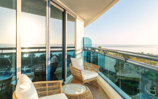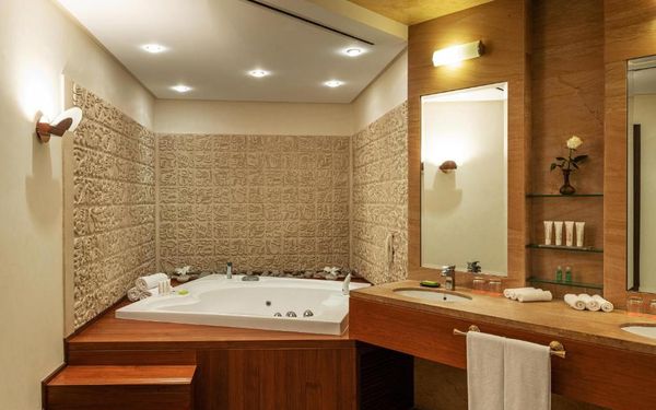 The hotel’s guest rooms are very spacious and all offer views of the sandy beach. These rooms also feature an over-sized luxurious bathroom, with separate walk-in shower and bath tub. Many of the rooms have private balconies.