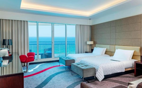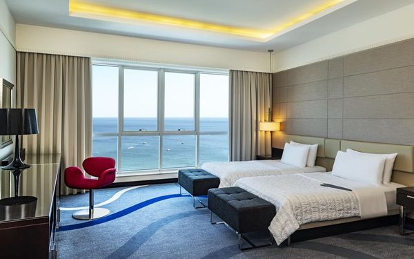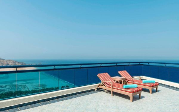 Set in a prime location with panoramic views of the Indian Ocean on one side and the Hajar Mountains on the other, Le Meridien Al Aqah is a 5-star hotel offering lavish facilities. An airport shuttle is available upon request.