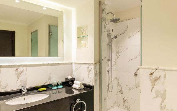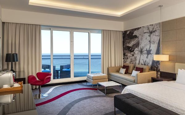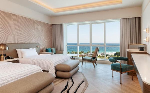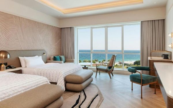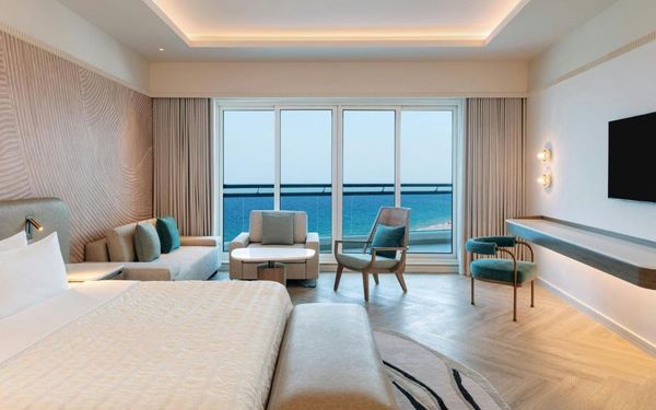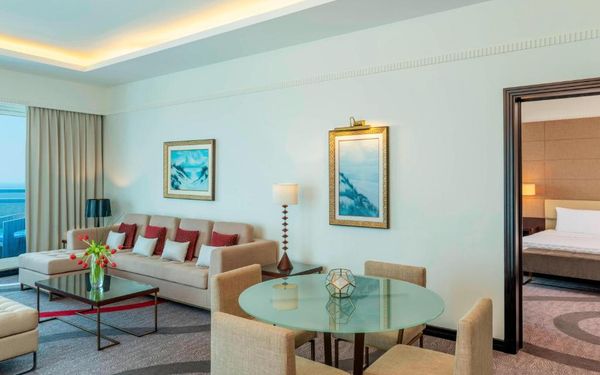 Leisure facilities at the hotel include a large free-form swimming pool, a luxurious spa offering a range of treatments, a fitness centre and a water sports centre.