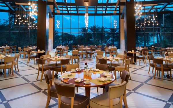 Le Meridien Al Aqah’s main restaurant serves breakfast, lunch and dinner, including themed buffets. There are also speciality Indian and Thai restaurants, as well as a beachside restaurant for dining al fresco.