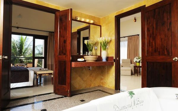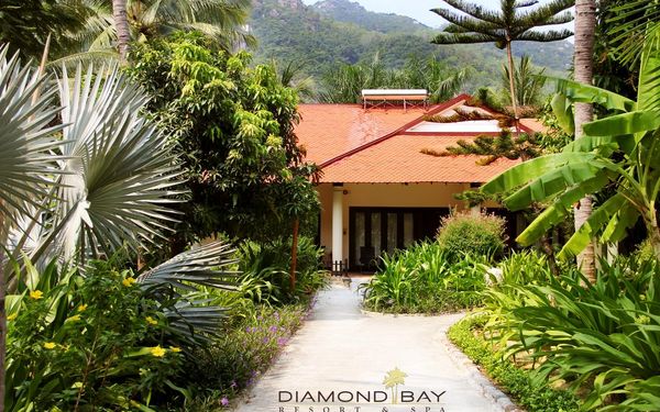 В 2 ресторанах курортного спа-отеля Diamond Bay предлагается широкий ассортимент блюд, включая деликатесы вьетнамской кухни и фирменные блюда интернациональной кухни. В ресторане Vista Grill House сервируют завтрак и ужин «шведский стол» с блюдами местной и интернациональной кухни. Ресторан Banana Leaf открыт на обед.