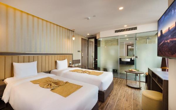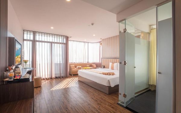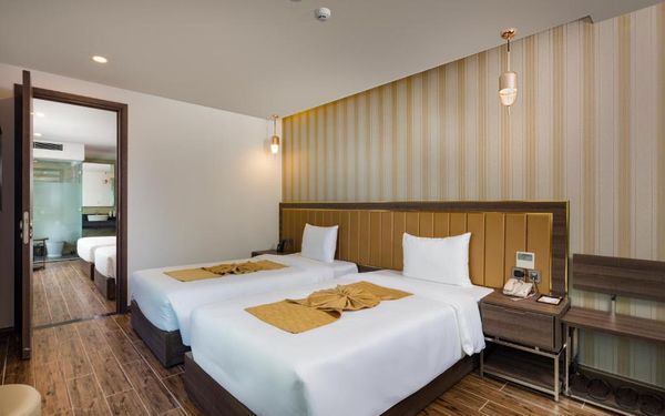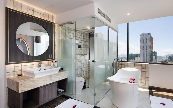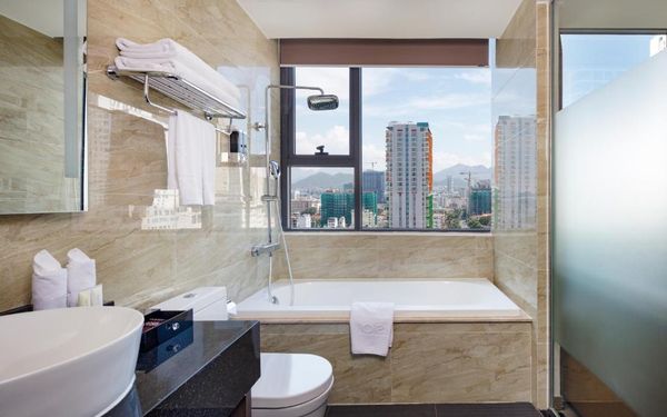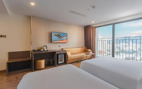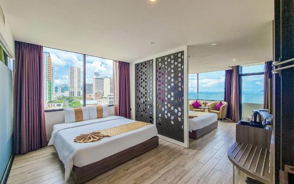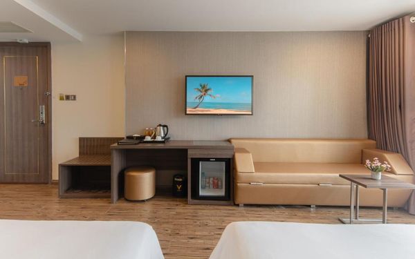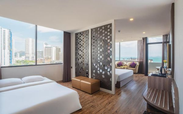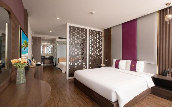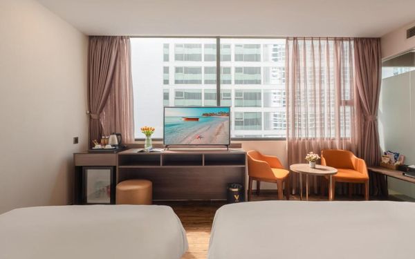 V Hotel Nha Trang — это отель с 4 звездами на первой линии города Нячанг. В распоряжении гостей фитнес-центр, общий лаундж и терраса. В числе удобств — услуги консьержа и ресторан, а также открытый бассейн. Гости могут обратиться к сотрудникам круглосуточной стойки регистрации, воспользоваться трансфером от/до аэропорта или доставкой еды и напитков, а также подключиться к бесплатному Wi-Fi на всей территории.