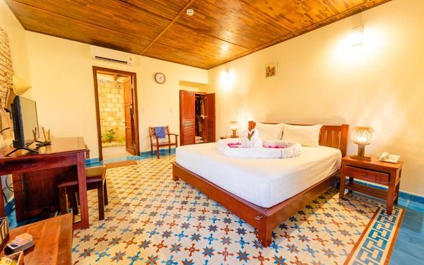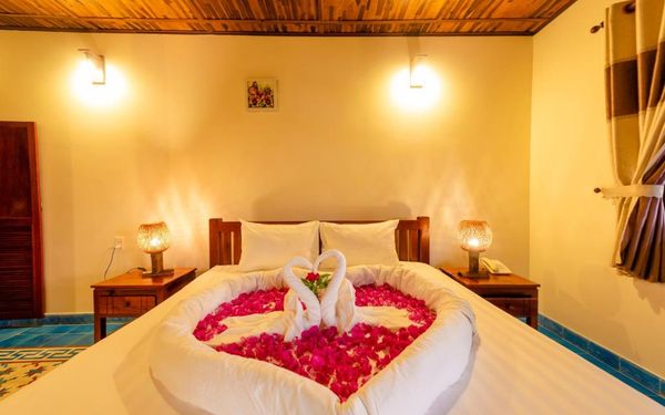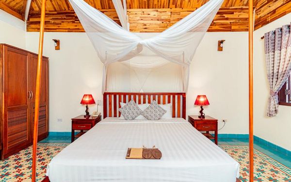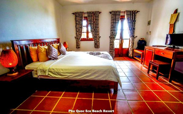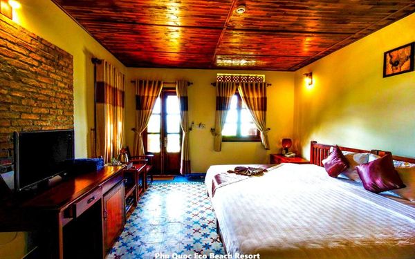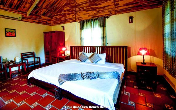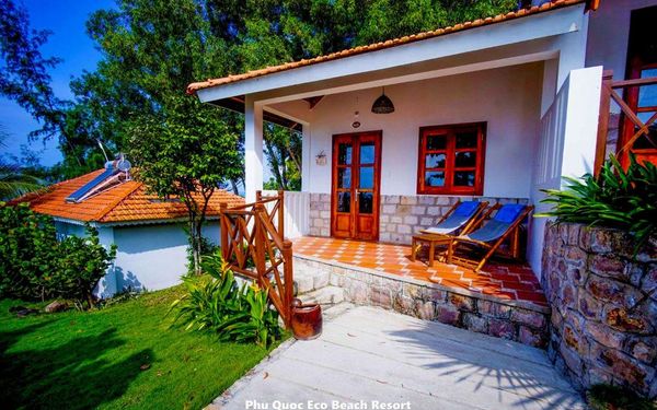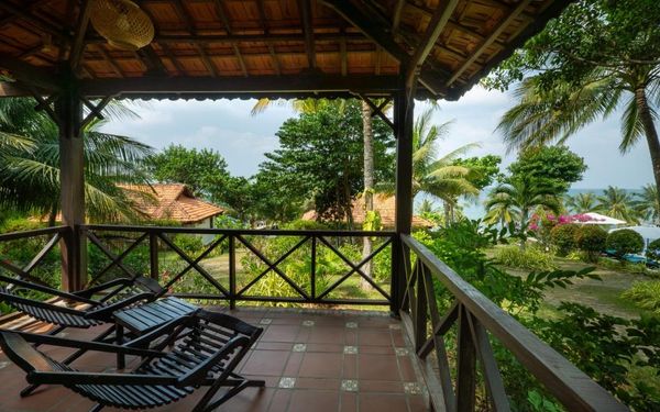 Из открытого бассейна курортного эко-отеля Phu Quoc Beach открывается прекрасный вид на море. В ресторане подают различные блюда азиатской и западной кухни, а в баре Beach можно заказать алкогольные и безалкогольные напитки.
