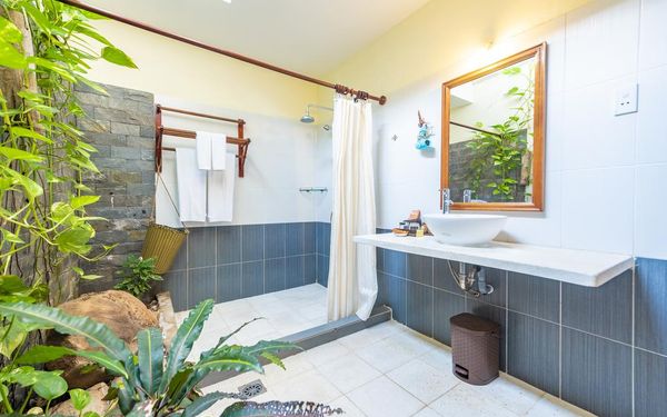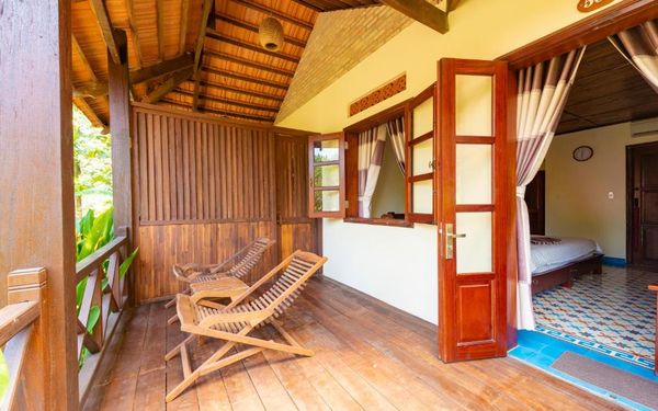Из номеров, оформленных в балийском стиле, открывается вид на окрестности. Пол выложен плиткой. В числе удобств мини-бар, терраса и собственная ванная комната с душем на открытом воздухе.