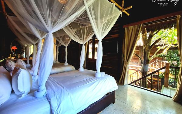 Ocean Bay Resort & Spa Phu Quoc — это курортный отель с 5 звездами на первой линии города Фукуок. В распоряжении гостей бесплатные велосипеды, открытый бассейн и фитнес-центр. Среди удобств есть частный пляж, а также сад и терраса. Гости могут обратиться к сотрудникам круглосуточной стойки регистрации, воспользоваться трансфером от/до аэропорта или доставкой еды и напитков, а также подключиться к бесплатному Wi-Fi.