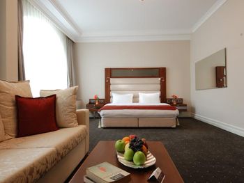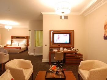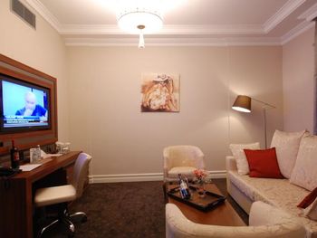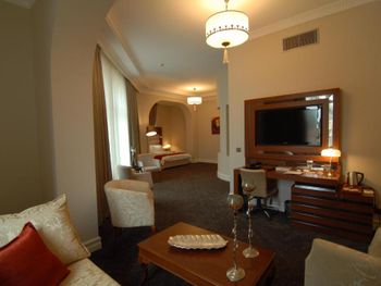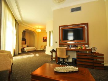 Изысканные номера с кондиционером и классическим интерьером оформлены в теплых тонах. В числе удобств телевизор с плоским экраном, мини-бар и собственная ванная комната.