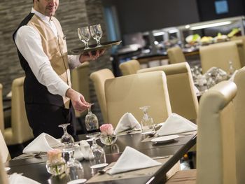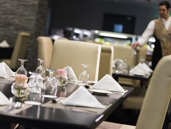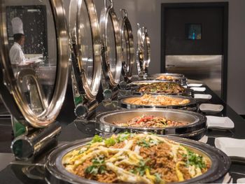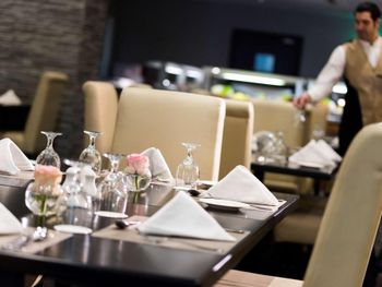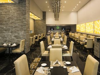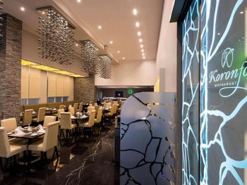 Гостям предлагается отведать традиционные блюда восточной кухни, погрузившись в изысканную атмосферу ресторана отеля.