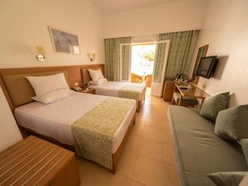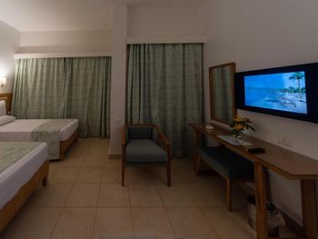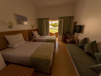 Ну, начнем с того, что гостинница старая и пошарпанная. Брали семейный номер, кто его делал непонятно, всё какое-то неудобное, планировка совершенно дурацкая. Места мало, темный номер, тусклый свет. В баре совершенно не умеют делать коктейли. Да,и сам бар - печальное место. Территория большая , но всё пошарпанное, какой-то неприятный неоновый свет и унылая музыка. Хочется по-скорее оттуда уйти. В ресторане еда абсолютно невкусная и не разнообразная. Бассеин небольшой, египетская музыка громкая и напрягает. Короче отелю пора на реновацию и серьезный ремонт номеров. Мы не смогли пробыть там больше двух дней, потом переселились в другой отель.
