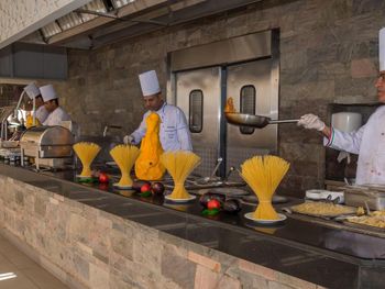 В курортном отеле работают 3 ресторана и 4 бара, где гости могут заказать блюда традиционной кухни и напитки и посмотреть живые выступления в помещении или на террасе.