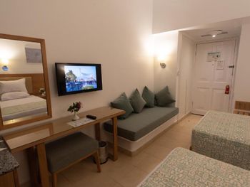 Убитый, старый отель, все в грязи, такое впечатление что там не убирались 10 лет! На мою просьбу продлить номер мне сказали нет мест. Когда я показал что на Букинге есть, включилось хамское отношение на ресепшн и нам дали номер в самой дали от пляжа, на столько грязный что мы отказались сразу же и тогда сразу нашёлся более менее нормальный номер, в котором хотя бы вода текла из крана и не было запаха старости.