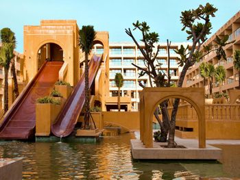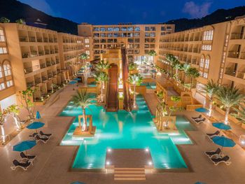 Бассейны и горки понравились, ребенок был доволен. Завтрак разнообразный, но необходимо приходить пораньше, если придти после 9, приходится ждать столик, все занято. Отель вроде не старый, но подушатанный, пора ремонтировать. Номера обычные, в целом все есть, не хватало шкафа с полками и микроволновки. Подкупило, что были помимо шампуня, бальзам для волос и даже лосьон для тела!