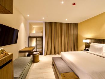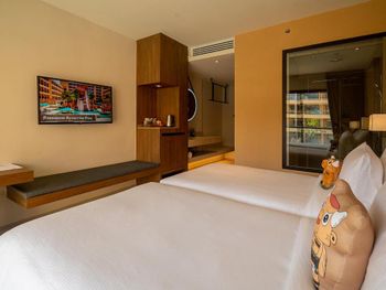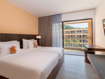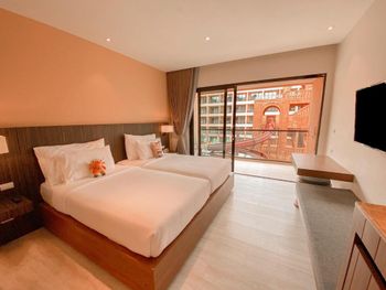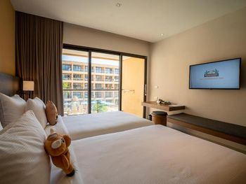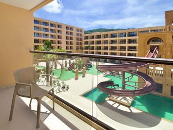 Хорошее расположение, до пляжа Ката 10 минут пешком. Рядом магазины, кафе, все, что нужно. Довольно большой бассейн с горками, но не для малышей, от 7 лет, я бы сказала. Номер был сеймейный, одна кровать кинг сайз и двухъярусная кровать, удобно, чисто, уборка каждый день, воду приносили в стеклянных бутылках 0,5 по 4 шт. (нам на 2 взрослых и 1 ребёнка не хватало совсем)). Территория состоит из внутреннего двора с бассейном. есть Детский клуб и футбольная Площадка.
