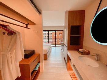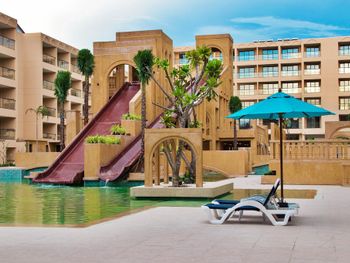Выбрала этот отель, чтобы было интересно пятилетнему ребенку, и не ошиблась. Детская комната конечно совсем для малышей, но в такую погоду она и не нужна. Шикарный аквапарк, есть детские горки и есть для взрослых, детей не вытащить. Питание разнообразное, брали только завтраки, впечатлило то, что было горячее молоко, обычно в Тае оно холодное) а нам очень надо, так как везде ребенок ест только свою кашу. Мы брали номер на первом этаже, хоть в отзывах и писали, что очень часто заползают таракашки, у нас такой случай был только один раз, зато для ребенка очень удобно выходить без всяких лестниц сразу к бассейну. Расположение отеля хорошеее, до моря минут 7-10 наверное, рядом Веранда и Хоттабыч, если кому нужна русская еда/ или для детишек. Множество магазинов, аптек. В номере все необходимое, гель, кондиционер, крем для тела, халаты, тапочки. Отель относительно новый, поэтому находиться в нем очень приятно. Что порадовало, в отеле не было никаких ночных шумных посиделок у бассейна, в отличие от другого отеля этой отельной группы Beyond