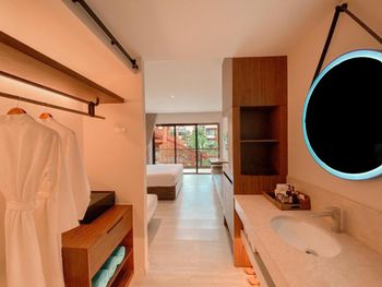 размещение было быстрым, приехали раньше. заселили раньше на час. Персонал в районе лобби приветливый и отзывчивый. Дали номер с видом на Будду, и мы просыпались под пение птиц.