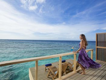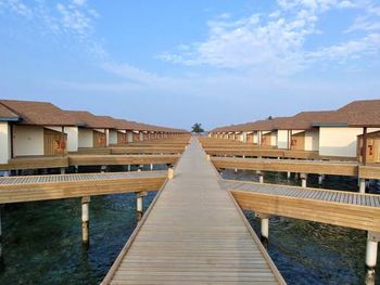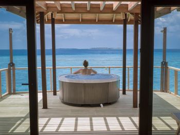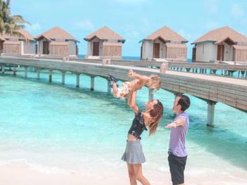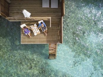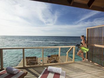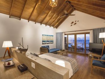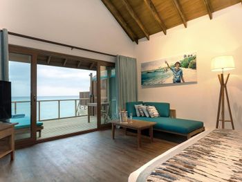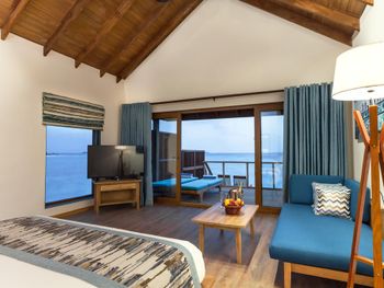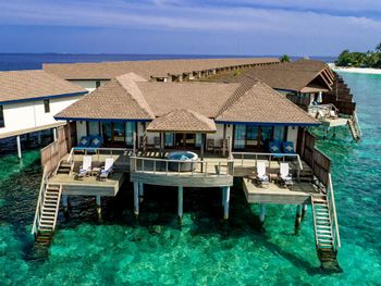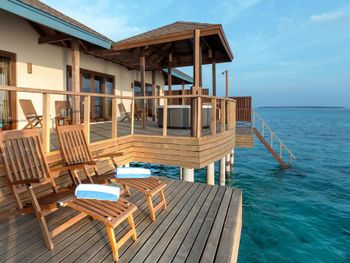 Водная вилла была неплохой, жили в самой последней в конце мостика с видом на остров. По соотношению цена/качество - на 3,5 из 5. Русскоговорящая девушка на ресепшн Ирина, которая честно нам призналась, что отель по факту 4 звезды, а не 5, как заявлено. Не было обязательных приятных фишек настоящей 5-ки: ватных палочек, дисков, пилочки для ногтей, шапочки для душа, зубных щёток, пасты и бритвенного набора. Полотенца меняли один раз в день. Были на пакете все включено, это «недовсе» включено. Только избранные напитки (самые дешевые, конечно же). Мини-бар в номере есть, но пустой, и персонал отказался нам его заполнить.