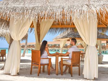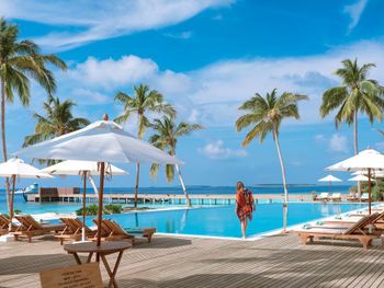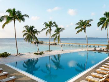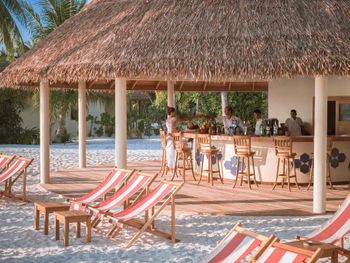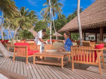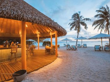 В отеле введено свое время, которое отличается от времени в Мале на 1 час (+3 часа к МСК). На Booking.com об этом информации не было! Мы специально заказали гидросамолет, который стоит дороже регулярного рейса, чтобы не было длительного ожидания. Я несколько раз списывалась и созванивалась через Booking с отелем с просьбой подтвердить утренний рейс на гидросамолете. В результате после 9-часового перелета из Москвы мы 4 часа ожидали свой рейс на гидросамолет. Питание "шведский стол" в отеле ОЧЕНЬ (!) скудное, соответствует уровню отеля максимум 3 звезды. Пасту готовят каждый день, но стоять в очереди за ней нужно не менее 30 минут. В ресторанах a la carte очень хорошее обслуживание, отличный персонал, готовят вкусно, но долго. Стоимость одного блюда 32$ с учетом налогов. В отеле существует два вида питания по системе "все включено": "All Inclusive" и "All Inclusive Premium", которые отличаются отсутствием лимита в ресторанах a la carte и бесплатным пользованием некоторых безмоторных видов спорта. На Booking.com такой информации нет и питание по "All Inclusive Premium" выбрать нельзя. Самая большая проблема этого отеля в отсутствии хорошего пляжа для гостей всех вилл. Отличный пляж с прекрасной лагуной есть только у гостей водных вилл и вилл с джакузи. Береговые виллы с джакузи (№ с 401 по 420) имеют свои зонты и лежаки. Остальные гости могут только погулять по этому пляжу или посидеть на шезлонге в баре, так как несмотря на то, что пляж большой, зонтиков и лежаков для общего пляжа нет. Все остальные виллы, которые отель преподносит как "пляжные виллы" имеют просто выход к морю, но пляжа нет и вход в море все в камнях и мертвых кораллах. Все дорожки в отеле посыпаны песком, ходить неудобно, вся обувь покрывается песчаным налетом, лично мне это очень не понравилось. Уборка комнат производится плохо, по пятницам уборщиков вы не дождетесь, хорошо если к обеду бесплатной воды принесут!