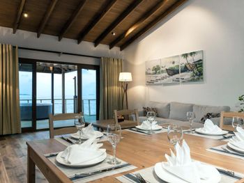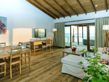 Нет возможности уединения- виллы расположены близко, если попадаются громкие соседи, то это не очень. Тухловатый дизайн построек, маловато экзотики. Хотела по приезду взять виллу на воде, но отказалась от этой идеи именно по соображениям дизайна. Нет красивых локаций (с гамаками, качелями итд) на воде. Нет штатного фотографа. Плохо поставленный финансовый вопрос: банкомата нет, обменника нет- мне на родине в обменнике выдали доллары старого образца- была проблема длинной в неделю с их приемом. Персонал долго тянул вопрос, но затем все же как-то положили на депозит ! Будьте осторожны- объявления о том, что они не принимают доллары старого образца на Booking.com у них нет! В одном из баров попытались подсунуть на подпись чеки предыдущих постояльцев. Так же берут доплату за любые мелочи и не делают скидку в happy horus, если сам не вспомнишь. Сервис немного с перебором: виллу убирали аж 3 раза в день- постоянно как не зайдёшь- у тебя в комнате чел с метлой. Та же история в ресторанах- дергают через каждые 5 мин, не расслабиться. Для любителей одиночества и тишины (таких как я) не самый лучший вариант, но по мальдивским стандартам цена примерно соответствует качеству, так что ок.
