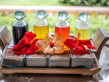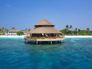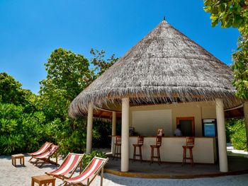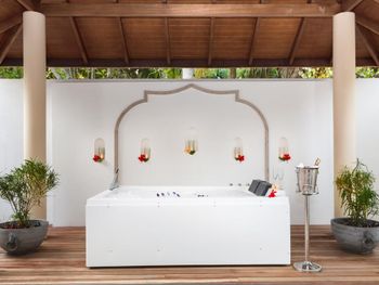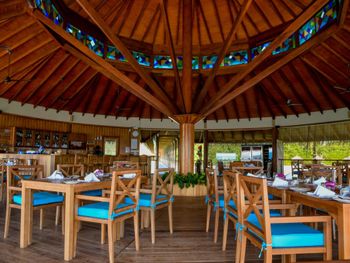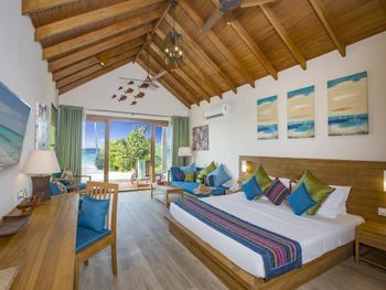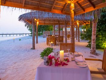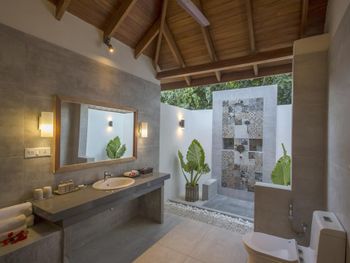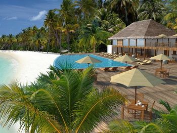 К услугам гостей 150 роскошных традиционных мальдивских вилл с гидромассажной ванной. Виллы находятся в тропическом саду, на пляже или на сваях над бирюзовой водой. В отеле работает дайвинг-центр со всем необходимым оборудованием для исследования впечатляющего подводного мира рифа и прекрасного, таинственного Индийского океана. Гости могут заказать омолаживающие процедуры в оздоровительном спа-центре или позаниматься фитнесом в полностью оборудованном спортивном комплексе. Отель частично работает от солнечной энергии.