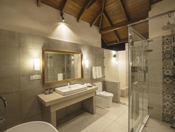 Официально Отель - 4*, хотя на Букинге указано - 5*. Отсюда и обслуживание, и еда. Все Включено не включает в себя ни фрешей, ни половину меню, даже чай в пакетиках(. Жаль, океан со стороны вилл с бассейнами грязный, у берегов плавает заплесневелый органический мусор с белой пенкой, видимо сюда проходит течение с грязного острова. Очень неприятно(. Хотя с другой стороны острова - чистая вода, куда приплывала большая стая дельфинов, с которыми удалось даже поплавать!