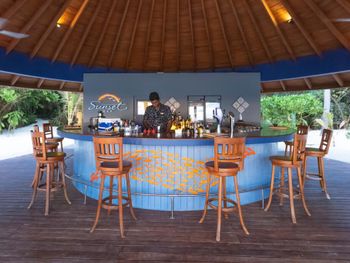 Отличный домашний риф. Видела акул, ската, осьминога. Много возможностей для дайва и сноркела. Дайверы из островитян- очень приятные. Европейская часть персонала 50/50. Возможность поучаствовать в жизни рифа и помочь окружающей среде. Прекрасно делают коктейли, неплохой выбор еды в главном ресторане, пиво только не очень- стандартный Тайгер. В номере неплохой вайфай, ютуб смотреть можно, на пляже вайфая нет. Относительно хорошая для отеля качалка, но нет отдельной стойки для жима или приседа, гантели макс. 20 кг- мистерам Олимпия не подойдёт.